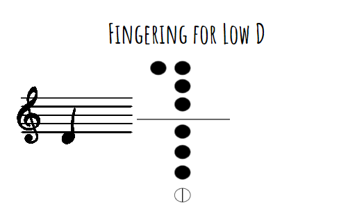 We are so close to getting through all right hand fingerings! For this week’s lesson, we are learning how to play low D. The biggest mistake in playing notes where you cover holes with your right hand is the tendency to overblow. This causes the dreaded squeak, so be sure you are thinking about blowing slow, gentle air! If you’re still squeaking, make sure your fingers are covering the holes!